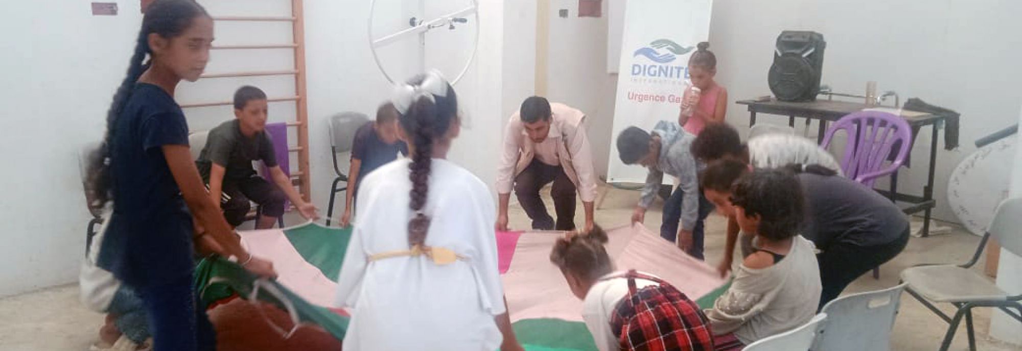 دير البلح – تواصل الجمعية الوطنية للتأهيل تنفيذ أنشطة ترفيهية للأطفال النازحين من كلا الجنسين في دير البلح، لجهودها المستمرة لدعم الصحة النفسية للأطفال المتأثرين بظروف الحرب والنزوح. ضمن مشروع "السلام والكرامة لغزة" الممول من مؤسسة كرامة الدولية.