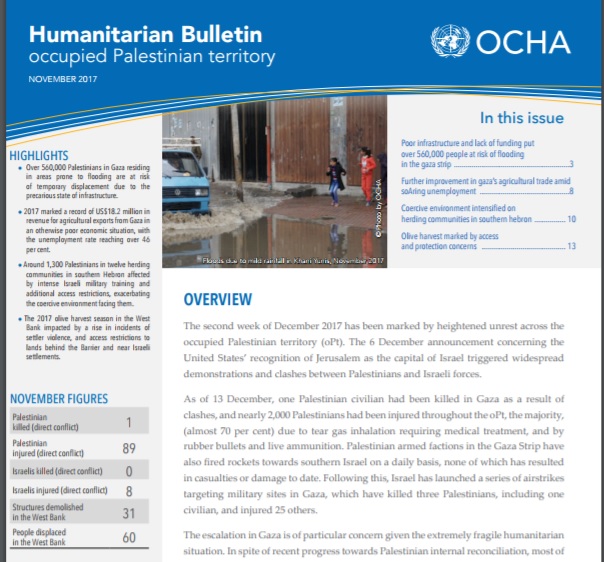 Submitted by [email protected] on Sat, 12/16/2017 - 09:30 Major Sector Human Rights Author(s) OCHA Thumbnail Resource Item Types Report Publish Year Sun, 01/01/2017 - 12:00 Website https://www.ochaopt.org/content/monthly-humanitarian-bulletin-november-2017