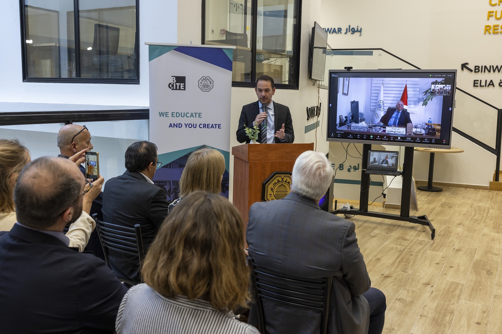 In his opening remarks, the Chancellor of Al-Quds University, Professor Imad Abu Kishek, welcomed the attendees and expressed his gratitude to the BCITE donors for their generous support of this flagship project, that will serve as Al-Quds University’s main driver of innovation and startup development.